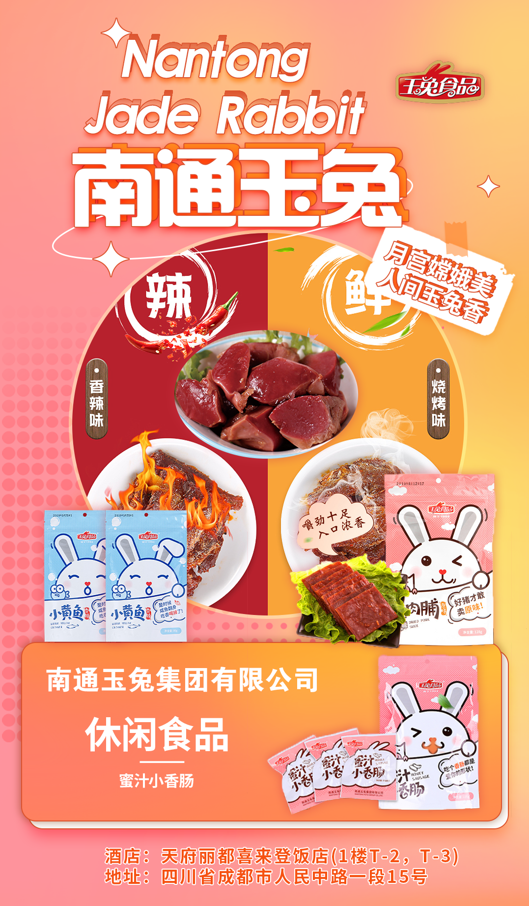 线上: ①借助专业媒体火爆食品饮料招商网、食品招商网和赢销力、纳食等自媒体头部平台定向宣传; ②会期定点投放抖音流量,同时在抖音直播云逛展推广,实现**程度的引流效果,为参展商带来更多的合作商机。 城市腹地,配套成熟。坐落于城市的中心区域,附近有各种住宿、出行、餐饮和娱乐设施,满足您的各种需求。饭店还毗邻必去打卡的网红景点,如春熙路、太古里、天府广场、宽窄巷子和文殊院。 ![]() ![]() ![]() 创建于1996年,是一家专业从事糖果及巧克力研究、开发、生产制造的综合性企业。公司目前拥有包括巧克力、糖果各类先进生产设备和生产线共20多条,生产巧克力、软糖等各类产品系列共100多个品种:公司旗下邂逅品牌运营中心,经多年运作,依托自有工厂,协同战略性供应链,目前已形成糖果(巧克力)、果冻、饼干三大系列的产品架构,产品覆盖线上线下各大电商平台及商超系统,“邂逅”系列产品及品牌深受广大青年消费群体的认同及喜爱。 ![]() ![]() ![]() 江苏楚王食品科技有限公司是一家从事预包装食品销售,食品销售,水果制品生产等业务的公司,成立于2019年11月21日,公司坐落在江苏省,详细地址为:宿迁市苏宿工业园区阳明山大道和镜泊湖路交汇处。 ![]() ![]() ![]() 玉兔集团已成长为一家集肉制品研发、生产、销售于一体的综合性集团公司。主要产品有高温、低温、腌腊、休闲四大类两百多个不同规格品种的肉制品。 公司拥有一支技术过硬、经验丰富的研发团队,以工匠精神和创新智慧,打造核心竞争力,引领行业发展方向,拥有腊肠、禽类肉制品、大红肠、香辣烤肠的制作方法等20多项发明专利。在北京、上海、广东、福建、江西、浙江、山东、安徽、江苏等地设立分公司,并且通过多样化的交易平台,让产品热销全国。 玉兔集团已发展成为中国肉食行业的主导者,被评为中国肉类食品行业强势企业,是中国肉类食品行业副会长单位,也是《中式香肠》、《肉松、肉干》国家标准的起草单位。 春色烂漫,花开正好,以春糖之名,相约三月蓉城。预祝广大客商朋友生意如春笋,财源如春潮。 |